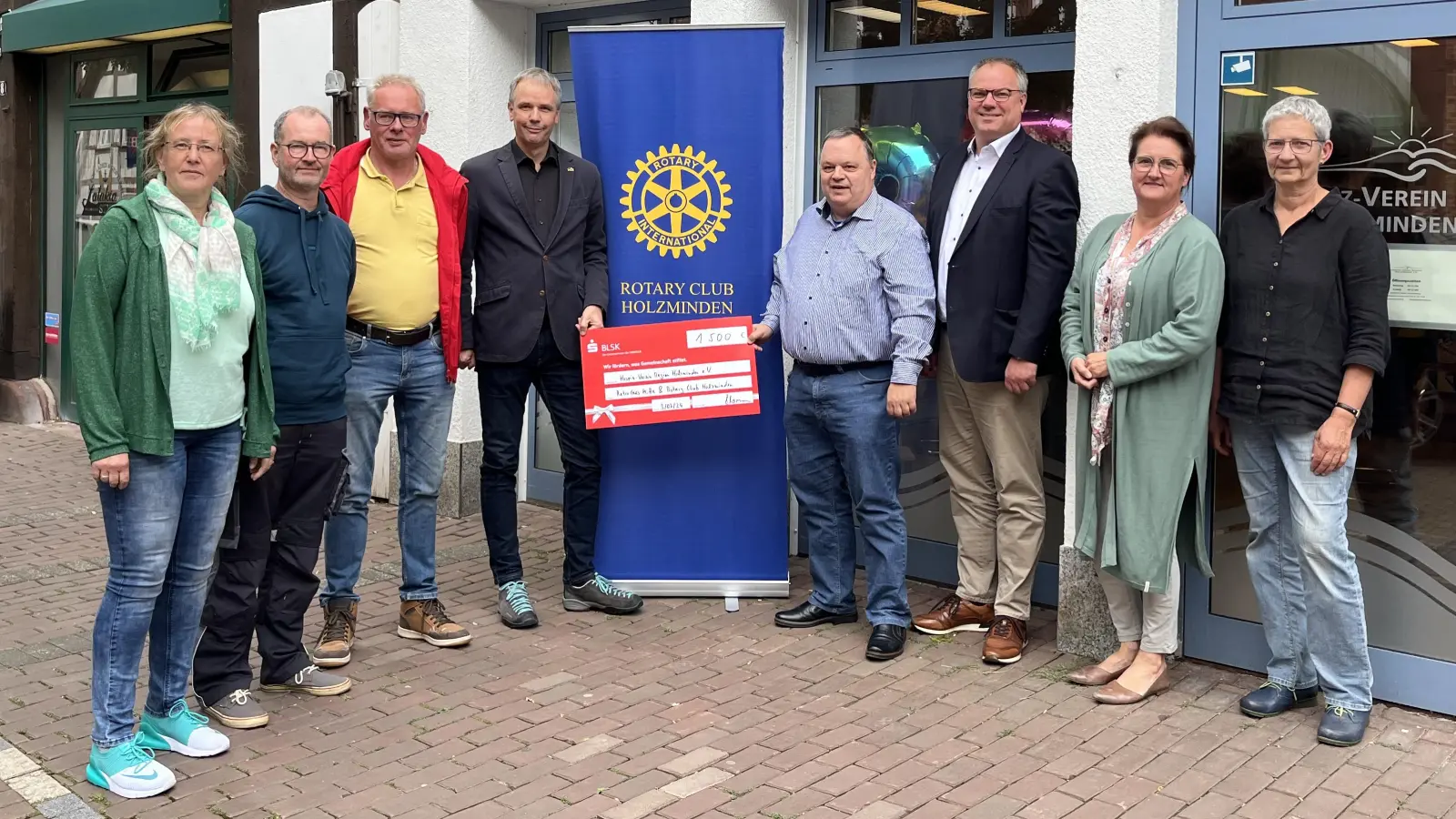 VertreterInnen des Rotary Club Holzminden und des Oldtimer-Club RCM übergaben eine Spende in Höhe von 1.500 Euro an das Team des Hospiz-Verein in der Mittleren Straße 6 in Holzminden. Ein Großteil der Summe stammt aus den Erlösen des diesjährigen Oldtimer-Treffens in der Steinbreite, das am 1. und 2. Juni ca. 1.800 BesucherInnen nach Holzminden lockte. Dort konnten die beiden Clubs Einnahmen über den Verkauf von Kaffee, Kuchen und Waffeln erzielen. Hinzu kamen einige Spendenbeiträge von Besuchern des Oldtimer-Treffens, die an der Besichtigung des alten Getreide-Speichers am Weserufer Holzminden teilnahmen. Alle beim Oldtimer-Treffen erzielten Einnahmen wurden später vom Rotary Club Holzminden und vom Oldtimer-Club RCM auf die Summe von 1.500 Euro aufgestockt.