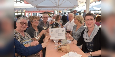 Mit einem Lächeln der Vorfreude kauften viele Gäste des 24. Weinfests in Hofgeismar ihre Getränke. Der Heimat- und Verkehrsverein Hofgeismar war wieder Veranstalter des fröhlichen, geselligen Festes auf dem Marktplatz. Schon am späten Nachmittag waren an beiden Tagen die Sitzplätze unter den großen Schirmen voll belegt. Man labte sich bis in die Nacht an guten Weinen, die an sechs verschieden Ständen direkt von den Winzern verkauft wurden. Gut gekühlt kamen die Weißen, Roten und die Rose-Weine ins Glas. Dazu konnten Brezeln, Käsewürfel oder eine Vorspeisenplatte von der neuen Pizzeria (Hirschapotheke-Restaurant) erworben werden. Für den größeren Hunger gab es Grillwurst, Pizzastücke und am Samstagnachmittag auch Kaffee und Kuchen vom Café am Markt. Das Kaffeetrinken wurden erstmals beim Weinfest angeboten und kam gut bei den Gästen an. Zur Eröffnung gestaltete der Fanfarenzug Hofgeismar den Umzug. Am Freitag spielte das Duo „Inflame” und am Samstag sorgte die dreiköpfige Band „Werra-Power” aus Witzenhausen für Stimmung. Trotz schlechter Wetterprognose war das Weinfest an beiden Tagen hervorragend besucht und blieb größtenteils vom Regen verschont. Wilfried Eckart und Dieter Rüddenklau vom Vorstand des Heimat- und Verkehrsvereins freuten sich über den großen Erfolg des 24. Weinfests mit bewährtem Rezept. Die Beziehungen zu den Winzern bestünden schon viele Jahre und der feste Termin am letzten Juliwochenende wäre mittlerweile gut bekannt bei Gästen aus nah und fern. Auf dem Wohnmobilplatz hatte Eckart über 50 Wohnmobile gezählt, die zum großen Teil Gäste des Weinfestes waren. Das Konzept des Heimat- und Verkehrsvereins, für das Weinfest mit Livebands keinen Eintritt zu fordern, und die Preise der Getränke moderat zu halten, ging wieder auf. Zwischenzeitlich ausverkauft waren die Weinprobe-Rabattkarten, mit sechs Weinproben zu 12 Euro, die eine guten Einblick in die Welt der Weine brachten.