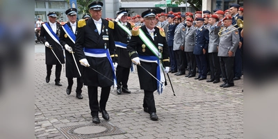 Eine Besonderheit war diese Beverunger Schützenfest in zweifacher Hinsicht. Am Freitagabend wurde in den traditionellen Zapfenstreich auf dem Kellerplatz der Rückkehrerapell der Patenkompanie zu Ehren der aus ihrem Dienst in Litauen heimgekehrten Soldaten integriert.