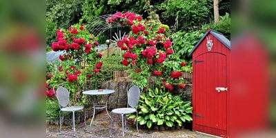 Über die Prämierung ihres Gartens haben sich Birgit und Franz Göllner aus Beverungen ganz besonders gefreut. Ihr Garten ist ein echter Familiengarten, der schon einige Umgestaltungen erlebt hat. Gerade haben sie die Hochstammrosen abgeschafft und dafür Hochbeete für die Enkelkinder angelegt, die hier lernen können, wie z. B. Kartoffeln wachsen. Die Rasenfläche kann zum Fußballspielen genutzt werden und ein Spielhaus wurde im Randbereich integriert. Ein kleiner Teich, Tomaten im Kübel und vielen, prächtig blühende Stauden kennzeichnen den Garten der Familie Göllner. Auch die Vertikale wurde genutzt und mit bepflanzten Rank-Gerüsten begrünt. Birgit Göllner berichtet bei der Preisverleihung von der meditativen und beglückenden Wirkung der Gartenarbeit, die sie zur Erholung nutzt und als ihr Hobby bezeichnet.