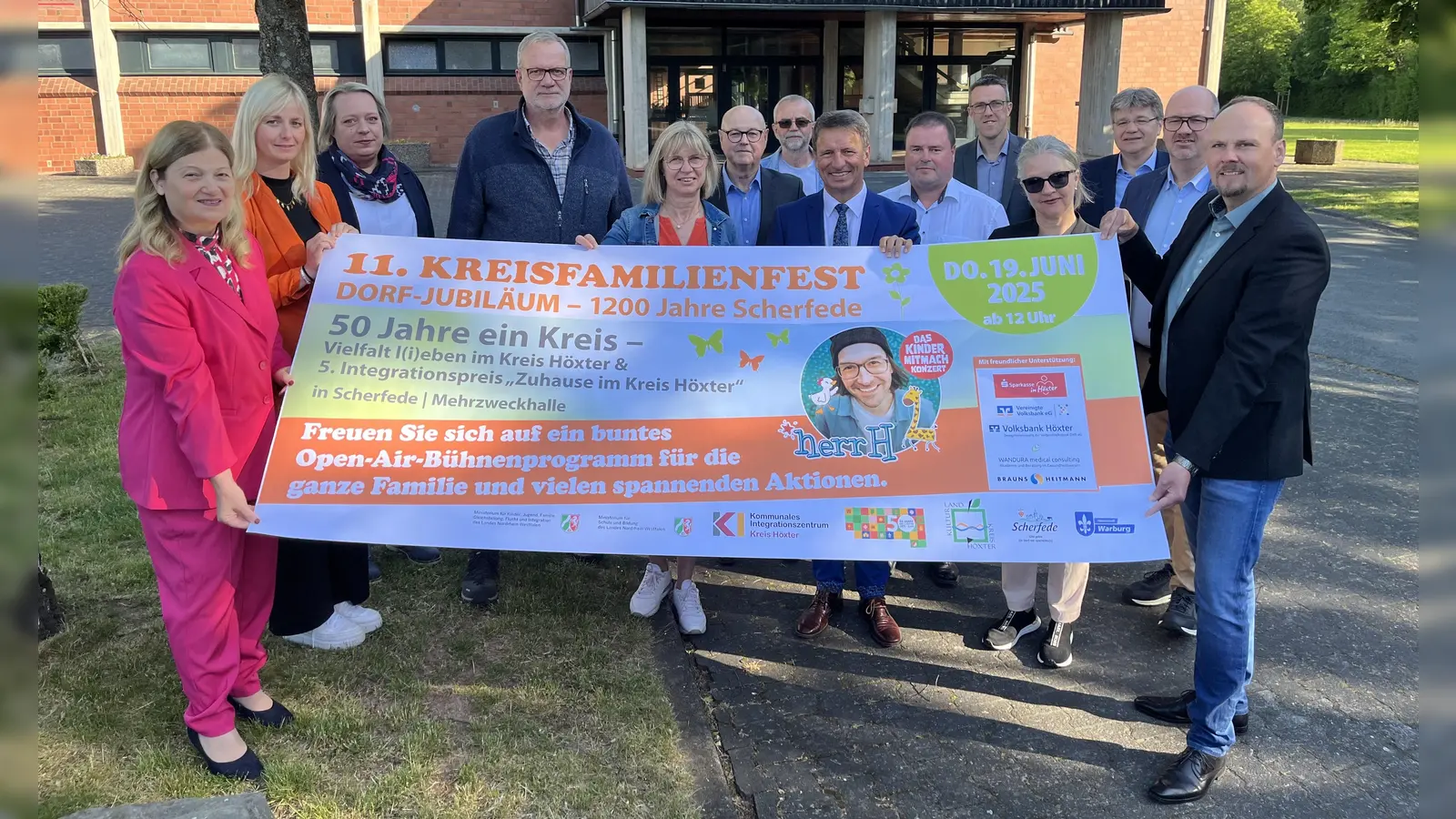 Das elfte Kreisfamilienfest des Kreises Höxter wird am Fronleichnams-Donnerstag, 19. Juni, in Scherfede gefeiert. Unter dem Motto „50 Jahre ein Kreis – Vielfalt l(i)eben im Kreis Höxter“ erwartet die Besucherinnen und Besucher auf dem Festplatz rund um die Mehrzweckhalle von 12 Uhr bis etwa 19 Uhr ein buntes Open-Air-Bühnenprogramm mit Showacts sowie zahlreiche Stände und spannende Aktionen für die ganze Familie. Höhepunkte werden die Verleihung des 5. Integrationspreises des Kreises Höxter unter dem Motto „Zuhause im Kreis Höxter“ sowie der Auftritt des bekannten Kinder-Liedermachers und Musikers „herrH“, alias Simon Horn, sein.