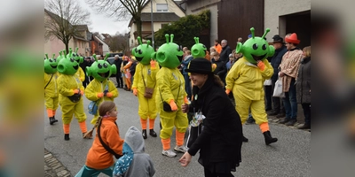 Straßenkarneval, das ist immer auch ein Schaulaufen: Beim närrischen Umzug präsentieren talentierte Wagenbauer ihre tollen Gefährte und zeigen einfallsreiche Kostümschneider, was sich mit Stoff, Nähmaschine und manchmal auch Pappmaché vollbringen lassen kann. So durften die Besucher des Haarbrücker Karnevalsumzugs auch diesmal nicht schlecht staunen. Was sich da auf den Straßen tummelte, war bunt, schrill und absolut sehenswert. Ein Dutzend Fußgruppen und Wagen schlängelten sich durch das Höhendorf. Dabei ging es durch alle Gewichtsklassen, vom bunt ausstaffierten Traktor bis hin zum kostümierten Bollerwagen. Aufwendig umgewerkelt waren die Gefährte beispielsweise zu einem Piratenschiff mit rauchenden Kanonen, einer Ritterburg mit zweifelhafter Minne oder Planwagen, gezogen von zweidimensionalen Pferden. Manche Gruppen kamen vom Mars, andere vom Meeresgrunde, wieder andere wollten offenbar gern nach Wacken. Auch gabs Dinos, nicht nur in Kinos, und frische Erdbeeren, die fruchtige Kurze ausschenkten. Natürlich flogen auch kinderfreundliche Süßigkeiten, in rauen Mengen sogar, welche eifrig aufgeklaubt wurden. Angeführt wurde der bunte Tross vom Prinzenpaar, Nico (Rasche) dem Unbeschreiblichen und Luisa (Timmermann) der Unvergleichlichen. Start und Ziel war wie stets die Bürgerhalle, wo der Umzug sogleich in eine stationäre, aber nicht weniger bunte Party mündete.
