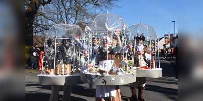 Nach kurzer Stimmungs- und Stärkungspause zwischen dem gastronomischen Angebot auf dem Kellerplatz und nach dem öffentlichen Wiegen der Prinzessin ging die Blau-Weiße-Garde an die Erstürmung der Rathausfestung. Der Bürgermeister hatte sich mit seinen Landsern, Ratsherren und Ratsdamen und den Bürgermeistern Tino Wenkel und Norbert Tyrasa sowie MDB Christian Haase verschanzt und verweigerte die Herausgabe des Schlüssels. Die Stadtkasse sei sowieso leer, gestand er und forderte die Gewinne aus der Narrensteuer zur Refinanzierung der Stadt. Dies verweigerten die Narren und machten sich über die Festungsanlagen lustig. Nach einem zaghaften Stoß mit dem Widderkopf meinten die Angreifer, sie könnten die Festung tanzend erobern und zeigten flugs einen gelungenen Formationstanz mit Hebefiguren. Der Bürgermeister lenkte ein und schlug vor: „Wenn der ganze Kellerplatz mittanzt, will ich diese eine und letzte Mal den Schlüssel ohne Gewalthandlungen übergeben“. Der Vorschlag wurde aufgenommen und nach der Schlüsselübergabe noch gemeinsam gefeiert.