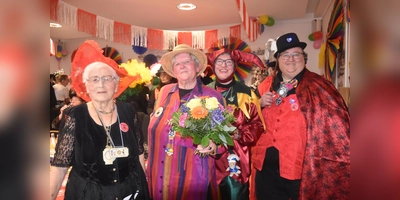 Nach ihrer Runde durch die Straßen Beverungens machten sich die jecken Frauen unter Führung der Alten Garde auf den Weg zum Beverunger Rathaus. Auf dem Rathausplatz machten die Frauen sich mit Schunkeln und Polonäse warm. Im dicht gefüllten Saal begrüßte die Präsidentin Paula Jochheim (84) die Frauen zum Weibercarneval und dankte den Mitarbeitern der Stadt für den Empfang mit Sekt und Schnittchen im bunt geschmückten Sitzungssaal. Ludger Ernst, als Zauberer verkleidet, vertrat den erkrankten Bürgermeister und kündigte an, den Rathausschlüssel in diesem Jahr verbissen zu verteidigen und auch nicht gegen Küsschen herauszurücken. Dem Charm und dem Wangenkuss der Präsidentin konnte der dann aber doch nicht widerstehen und übergab den großen Schlüssel am Band ohne Gegenwehr an die Weiber. Till Eulenspiegel (Barbara Hartmann) nahm wieder in Reimform die Politik in Land und Stadt auf Korn, entließ aber auch den Wähler nicht aus der Verantwortung, der gerne sparen wolle, aber nicht bei sich selbst. In der Hoffnung, dass die Umkleiden der Batze und hoffentlich auch das Hallenbad fertig gebaut werden, schmückte sie Ludger Ernst mit einem Päckchen Duschhauben am Band. „Till“ meinte, dass manches Thema aus dem letzten Jahr noch aktuell wäre, wie die Sanierung des Lilienweges, erwähnte die geplanten, teuren Bauvorhaben der Kita auf dem Parkplatz vor der Batze und den Umbau der Grundschule, für die die Fördermittel hoffentlich reichen würden und lobte die Aufgabe der Pläne für das Zwischenlager und den zügigen Glasfaserausbau im Beverungen. Die Alte Garde nutzte die Gelegenheit für Ehrungen und übergab an Hannelore Hering, die viele Jahre als Eierfrau die Begrüßung in der Stadthalle übernommen hatte, für 60 Jahre einen Blumenstrauß. Barbara Hartmann dankte die Präsidentin für ihre Till-Reden und für 40 Jahre Mitgliedschaft. Für 20 Jahre Mitgliedschaft wurden Kerstin Driehorst, Cordula Hartmann und Roswitha Rost geehrt. Als neues Mitglied wurde Nicole Wagenknecht begrüßt. Fröhlich feierten dann die fantasievoll gekleideten Frauen mit den Mitarbeitern der Stadt im Sitzungssaal. Abends ging die Party in der Stadthalle weiter.